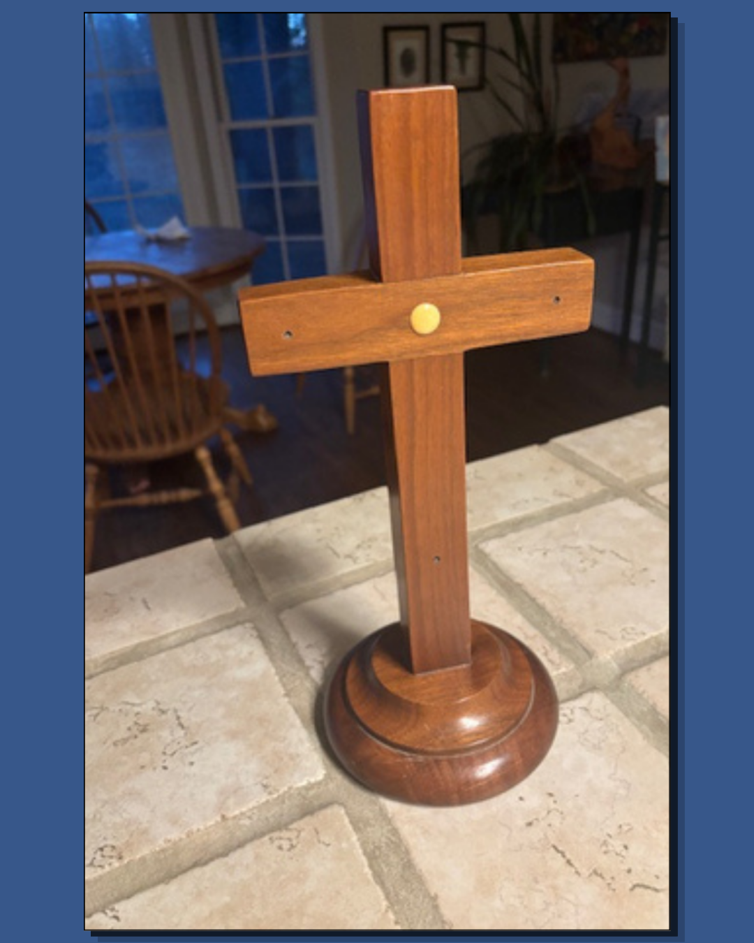 As a postscript: I sent a picture of the cross to my friend. I had not spoken with her for some time. In a text with the picture, I told her how much her father had meant to me and what a fine Christian example he always was to me. Unbeknownst to me, her husband had died during the week I had sent the text. She replied with heartfelt words of thanks for the memory of her father and replied that her husband had also been a fine Christian man. I was so glad I took the time to send her my thoughts about that cross.